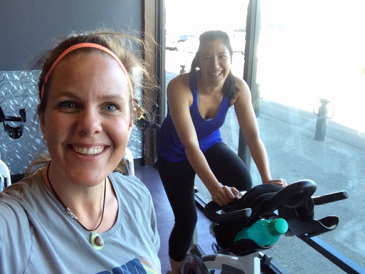 The next morning I woke up at 5:30 AM because I was at stooooopid level of excitement over trying out the spin class that was at 9:30 that morning. The guy at the counter told us that it can be competitive to get a bike and advised that we arrive at 9:00 to insure a seat. I think it caused a little anxiety in me and I was worried about oversleeping which caused the excitement… Anyhow, the spin class was bomb. Drea, a new friend and colleague from my newer school, is an experienced spinner and she agreed to walk me through my first class. I was really glad she was there because there was a lot to manage as we twisted the resistance down to stand up and sit down over and over while we pedaled for almost an hour. Sweat was dripping down my face like crazy and my thighs and butt were burning then and are still aching now in that ‘I got a killer workout’ kind of way.