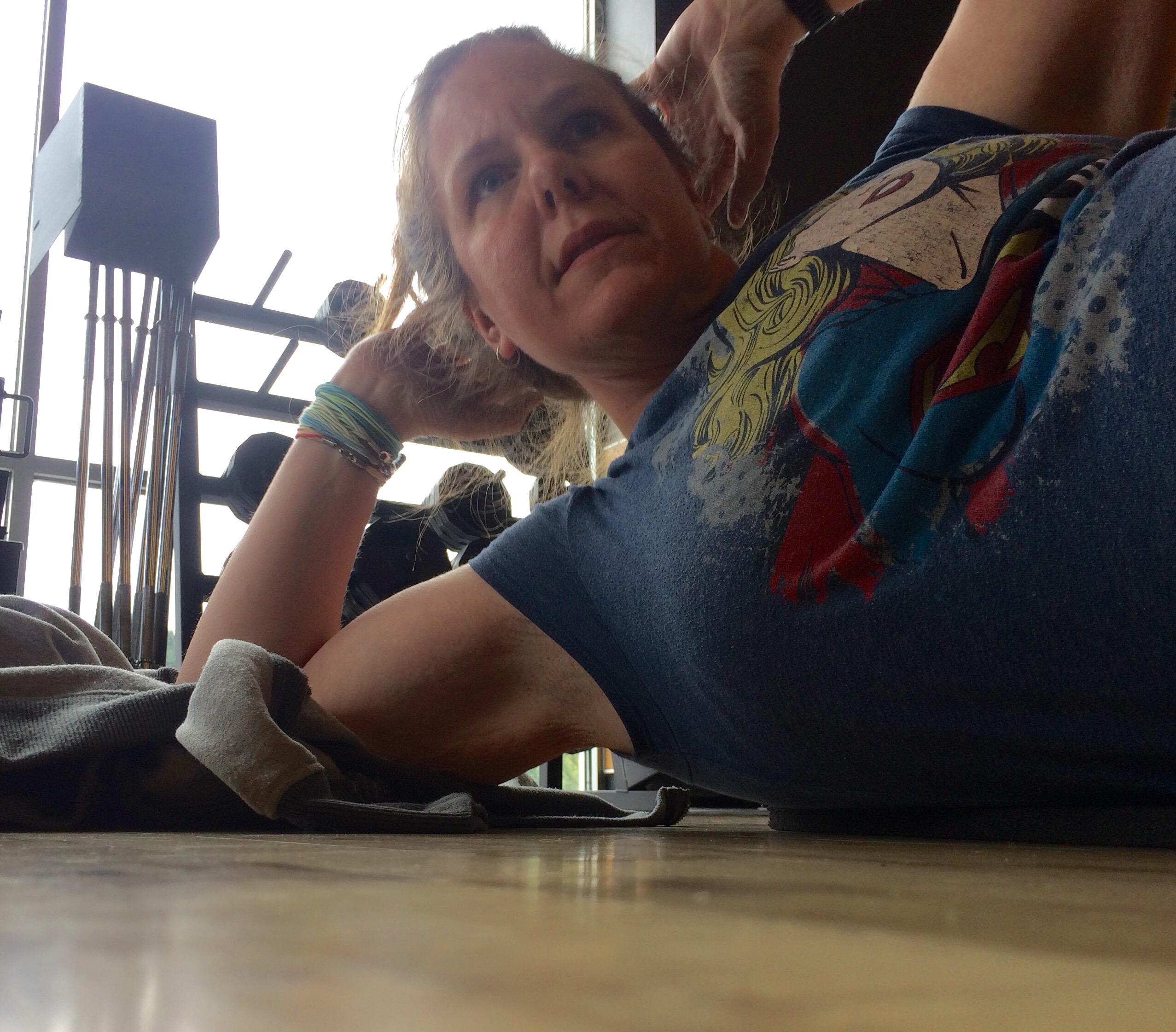 On Tuesday I had my meeting with Jessica, the personal trainer who is also my body pump instructor. We started out with a lot of chit chat about my history. Essentially is was a patient intake sheet, past injuries, health history etc. We did a BMI anaylsis which put me at 37.1 body fat. Not digging that but I’m also ok since I know I’m working at it. After that, we hit the floor. I was all excited to get on the equipment and do some big moves… but instead we did just a few simple things. She was focused on my injuries and places I need to strengthen, so that’s where we worked. She had me practice a big one legged step, up and down off a platform. Then we did a row on the row machine, I practiced squats and she showed me how to do a push-up on a bar. That’s it. After the session she let me know she was interested in continuing to train, but the cost is prohibitive for me at this point. But boy, she knew what she was doing becasue it was like a slow release of muscles complaining all the rest of the day. I came home and almost went for a run, I felt so fine, but the gradual release meant that two hours post training session my butt was suddenly like HELLO! Then about two hours after that my armpits were like WE ARE HERE, TOO! Then right before bedtime my ribs said DONT FORGET ABOUT US! Who knew you could make your ribs sore?? Where there’s a muscle group there’s a way, I suppose. 😂
