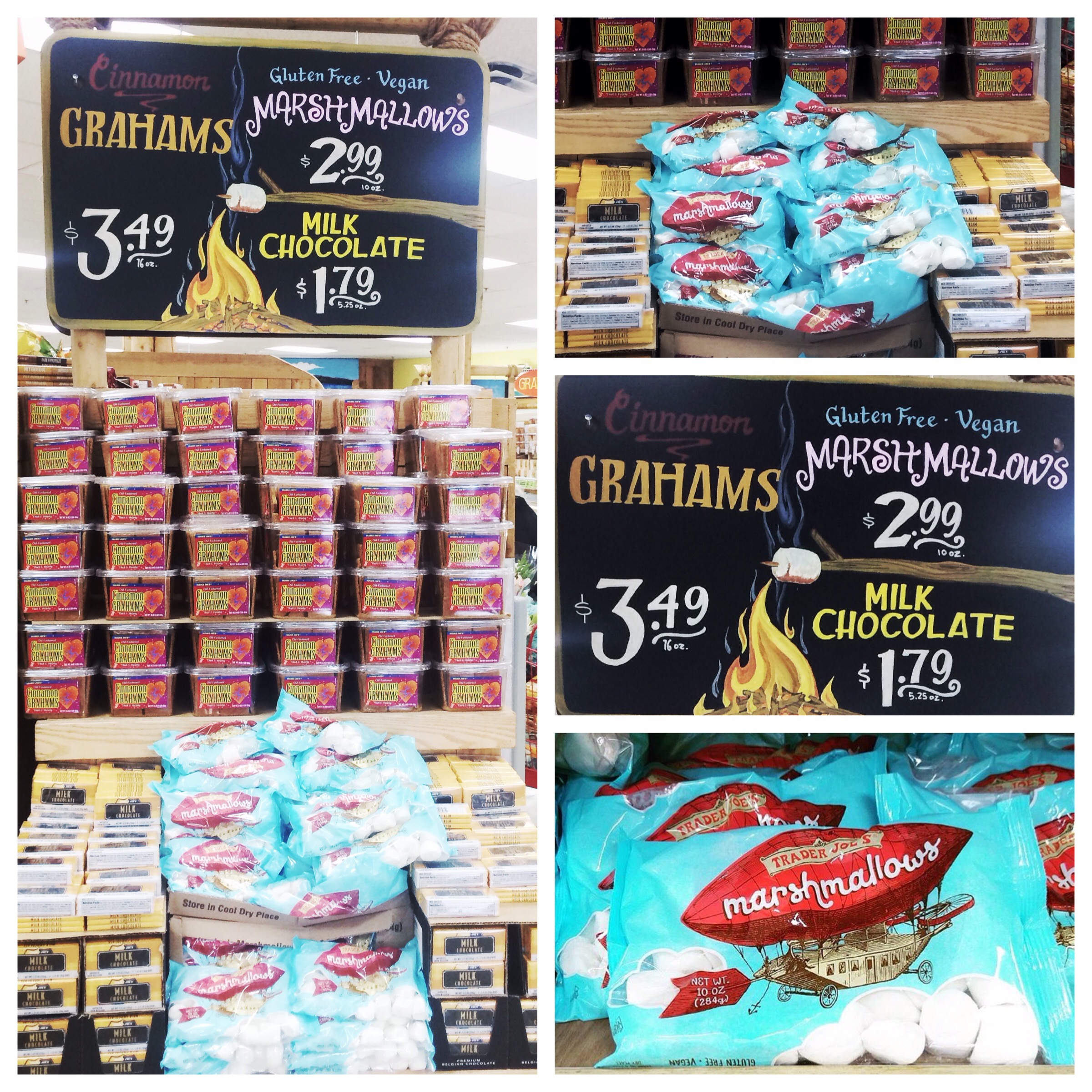 We did notice, however, that Trader Joe’s is now carrying vegan marshmallows!!! To those of you in the mainstream marshmallow world this isn’t a big deal, but to those of us in the vegetarian world it’s HUGE! Marshmallows are made of vanilla, sugar, gelatin and corn syrup; gelatin is made from animal bones so it’s a common no-no for vegetarians. When Bradley and I were on our honeymoon in 1999 we stopped the Seventh-day Adventist* church in Oregon on the way down the coast to get some marshmallows for our fireside romantic nights. It was there that we learned that the vegetarian marshmallow factory had blown up and burnt down and there were no more vegetarian marshmallows available anywhere. We were so sad! Four years later, a new factory was up and running but we could only get the marshmallows through a vegan company through the mail so we would rally our fellow vegetarian friends, split the shipping costs and order a summer’s supply! Then that company went out of business and we could only get them with coconut on the outside at Whole Foods, refrigerated, in a box of about ten. For $8.00. Who pays almost a dollar a marshmaoolw? I am not that girl, I tell you. We were stingy with our s’mores. Last year the vegetarian marshmallows turned up at Target, of all places, and this year, TRADER JOES! So you can see that marshmallows, while growing in size, color and quantity for most of you- an American institution, if you will, similar to apple pie- was an out of the loop thing for us, and finding them for less than six bucks at the local Trader Joes is cause for celebration!